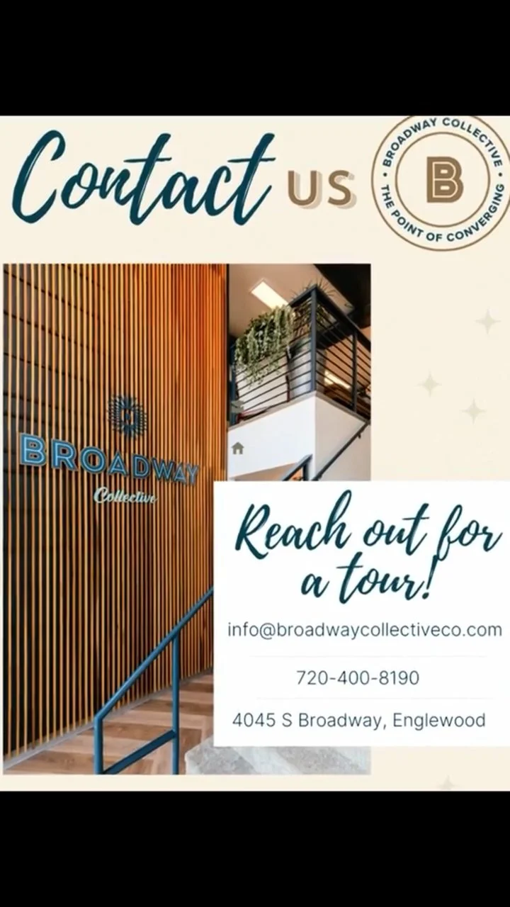 Broadway Collective is an Englewood-based, boutique creative coworking space. Our mid-mod building was built in 1964 and fully renovated in 2023.