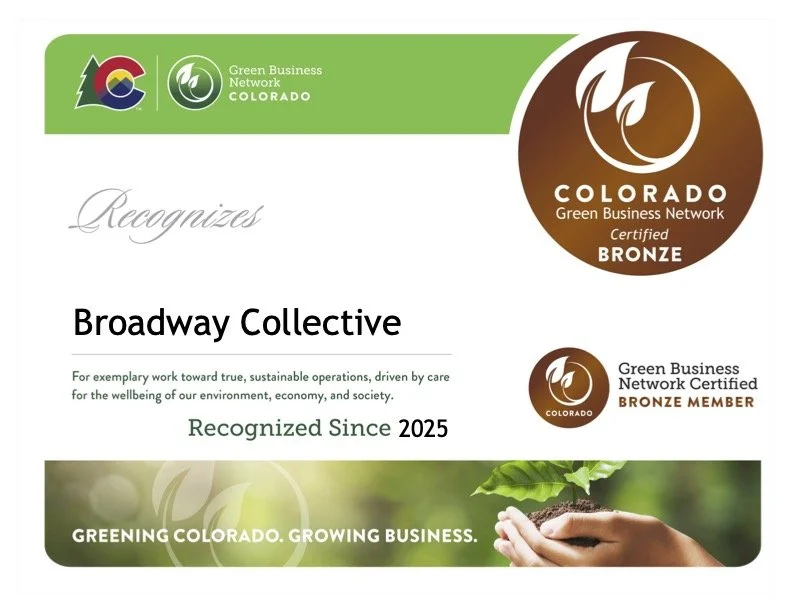 We are excited to announce that in the fall we were recognized through our efforts of becoming a green business in Englewood, that we achieved Bronze level status from the CO Green Business Network!